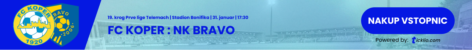 Na stadionu Bonifika se bo v soboto, 31. januarja, s tekmo ob 17.30 nadaljeval uvodni spomladanski krog sezone 2025/26 v Prvi ligi Telemach. V okviru 19. kroga bo FC Koper pred domačimi gledalci gostil vedno neugodni NK Bravo, dvoboj pa že vnaprej obeta zanimiv obračun ekip iz zgornjega dela lestvice.