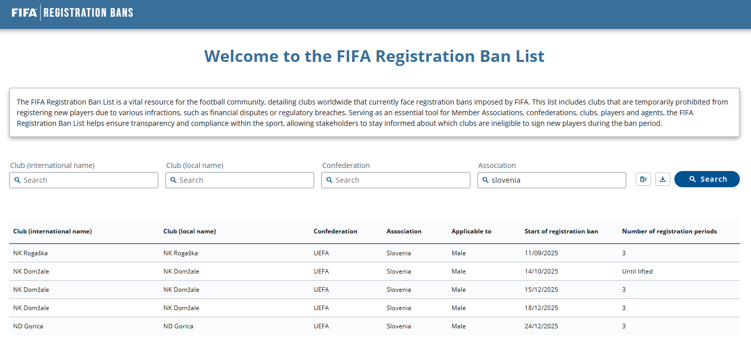Namesto prazničnega miru in kovanja načrtov za spomladansko reševanje sezone, je v Novi Gorici zavladal preplah. Medtem ko so navijači odpirali darila, je na naslov kluba prispela nekoliko drugačna “čestitka”, ki si je ni želel nihče. Mednarodna nogometna zveza (FIFA) je 24. decembra uradno aktivirala prepoved registracije novih nogometašev za ND Gorica. To je nov, morda celo usoden udarec za klub, ki v 2. SNL trenutno zaseda sramotno zadnje mesto in bi v zimskem prestopnem roku krvavo potreboval okrepitve za boj za obstanek.
