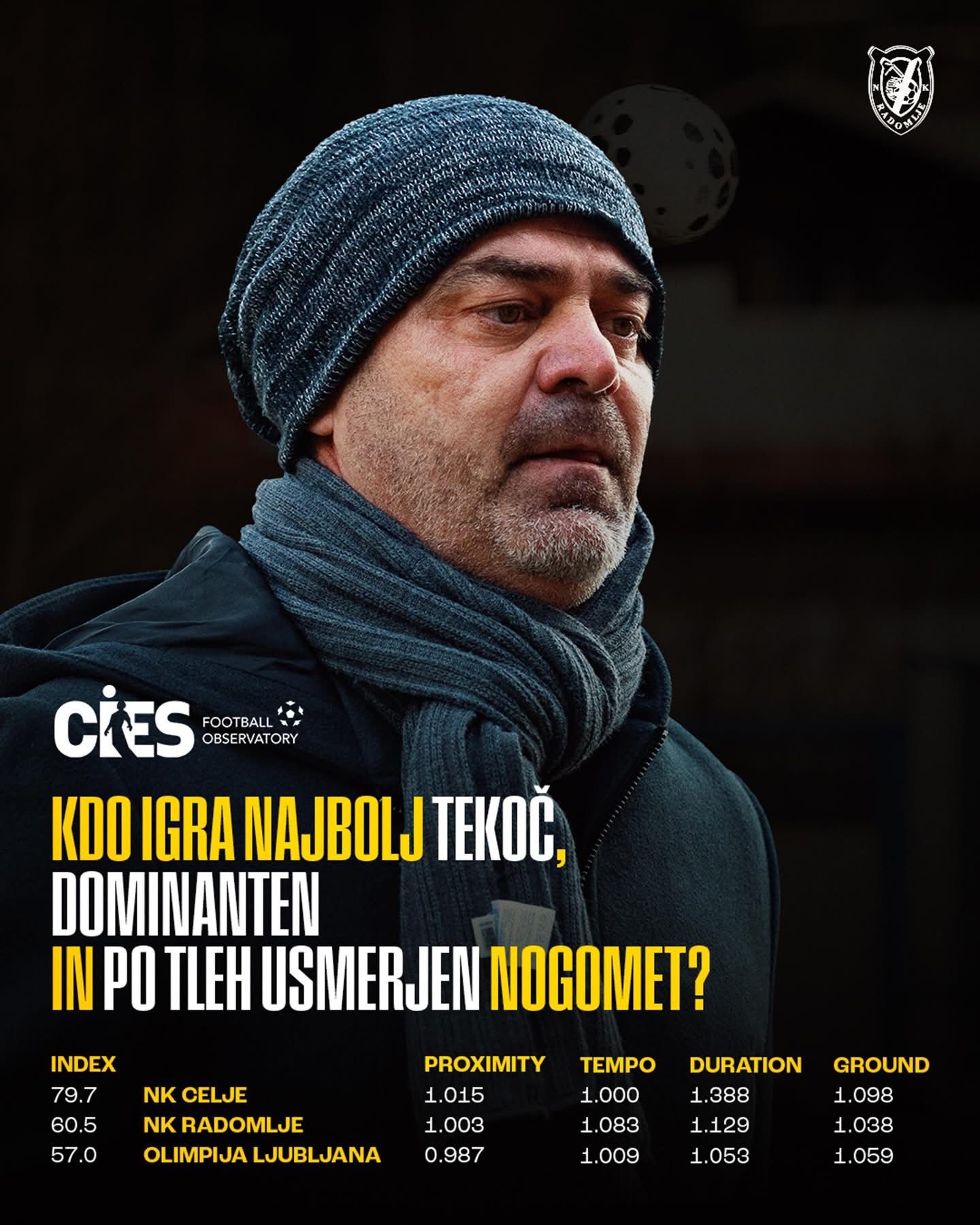 Da strokovnjak, ki je ob prihodu v Slovenijo nehote dvignil kar nekaj obrvi, saj se je marsikdo čudil izboru radomeljskega vodstva, dela res dobro, potrjuje tudi nedavna študija švicarskega nogometnega observatorija CIES. Ta je razkril, da v Sloveniji najbolj dominanten in po tleh usmerjen nogomet igra Celje, na drugem mestu pa so že – Radomlje. Celjski indeks dominantnosti zdaj vztrajno pada, delnice Jugoslava Trenčovskega pa očitno iz tedna v teden pridobivajo na vrednosti. Če bi torej 49-letnika temeljito preučeval in opazoval tudi kakšen od Radomljam bližjih klubov, ki je že preživljal boljše čase, to ne bi bilo presenečenje…