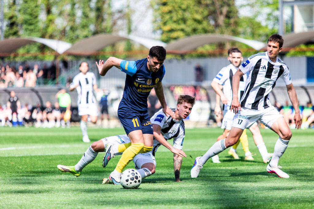 - 10. minuta: Kapetan Žan Karničnik je sprožil silovit udarec z 20 metrov in zadel za 1:0. Žiga Fermišek je bil ob natančnem strelu povsem nemočen.